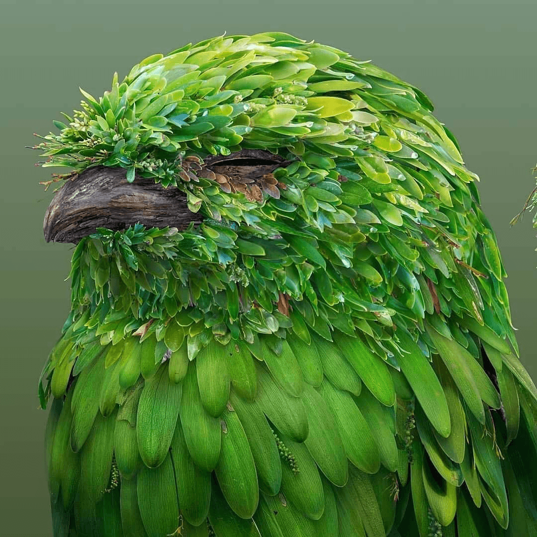 Digital artwork of a bird created from leaves by artist Josh Dykgraaf